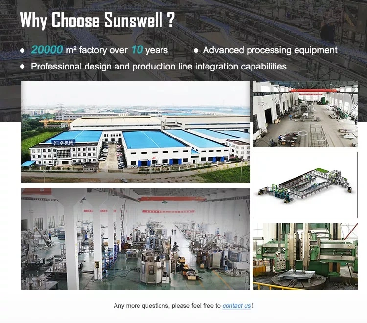 Fundada en 2008, Sunswell lidera el mercado en el campo del embotellado de líquidos, moldeado por soplado, etiquetado, maquinaria de envasado y tecnología de procesos para agua, té, jugos, bebidas carbonatadas, bebidas energéticas, líquidos, cerveza, aceite comestible, lácteos y cuidado diario. productos, etc