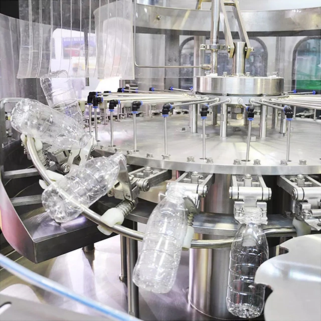 La máquina de llenado de agua consta de anillos, llenado y tapado todos juntos. La máquina de llenado de agua CGF se adapta al diseño de suspensión. Permite que la máquina llene diferentes tipos de botellas. Normalmente se utiliza como máquina de llenado de agua potable. Sin embargo, también se puede usar para llenar botellas de PET con jugo de frutas y té a alta temperatura simplemente cambiando la válvula. Se puede conectar con nuestras otras máquinas para formar la máquina de llenado de agua y la línea de producción de maquinaria de envasado.